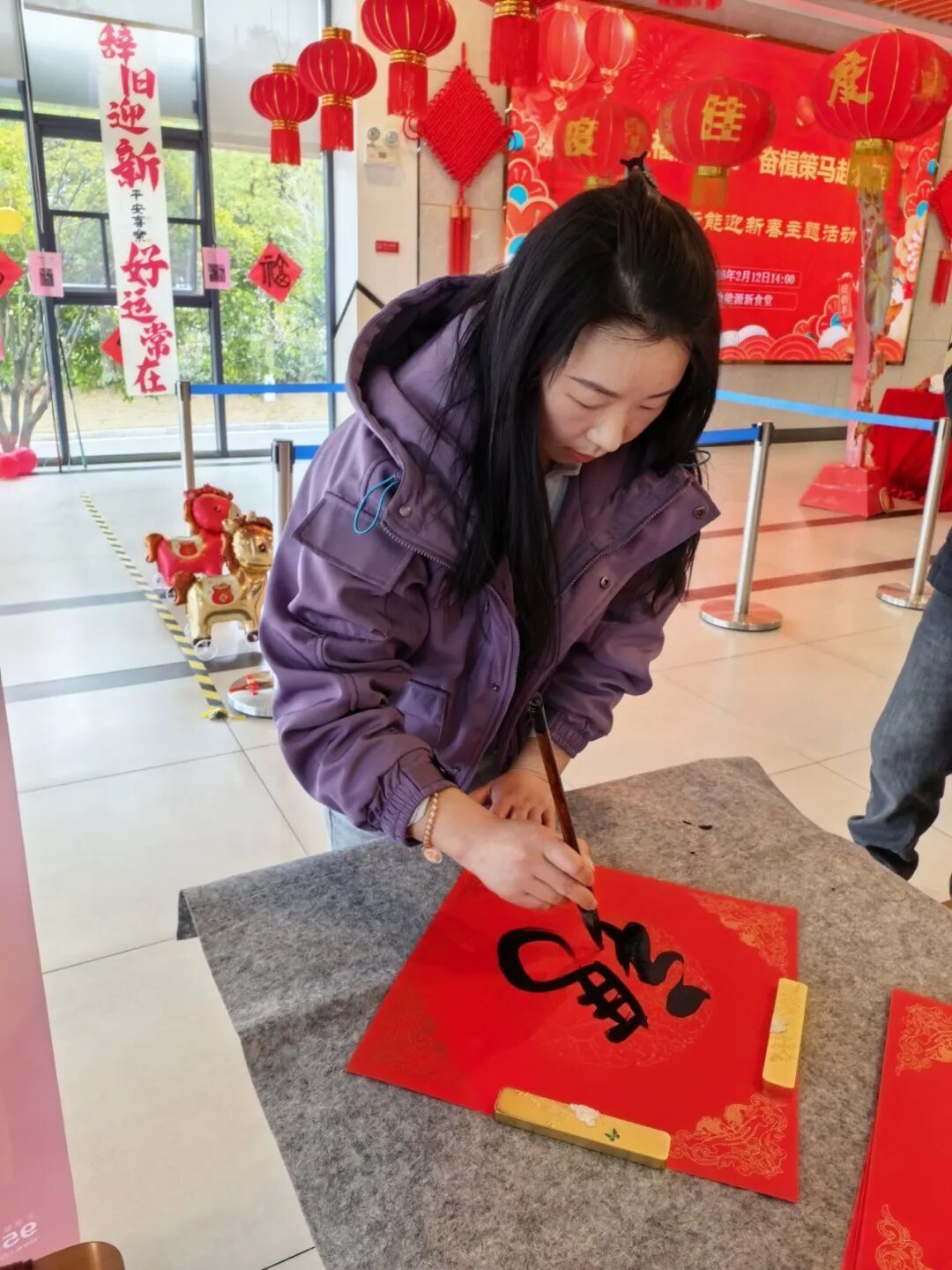 活動現場張燈結彩、年味盎然。傳統民俗區紅幅鋪展,墨香四溢,筆鋒流轉間,一個個飽含神韻的“福”字躍然紙上;有的還融入馬年元素,現場定制專屬拓印。不少員工還不時交流著貼“福”字的年俗記憶,濃郁的節日氣息撲面而來。