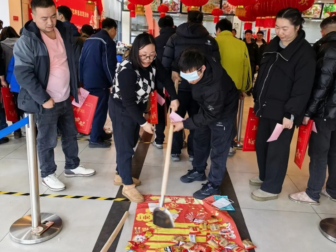 互動游戲區精彩紛呈,歡聲笑語不斷。“抓馬納福”環節中,大家手握釣鉤精準出擊,專注抓取馬年吉祥好運;“策馬奮進”賽道上,員工們凝神聚力,助力馬兒一路爭先、勇博頭彩;“鏟金納寶”場地上趣味橫生,蒙眼旋轉后精準落鏟,收獲滿滿;“幸運彩球”考驗著瞄準技巧,五“福”小球承載著期待,投中瞬間便是滿堂喝彩。